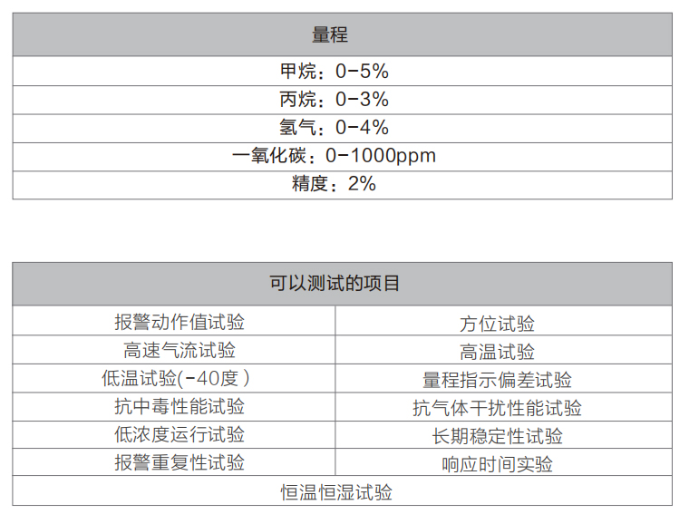 定制版本满足:EN50291-2018\EN50194-2009\EN60079-29-1:2016\UL2034:2017\IEC60079-29-1:2016标准;供电:两相三线 220V 25A;